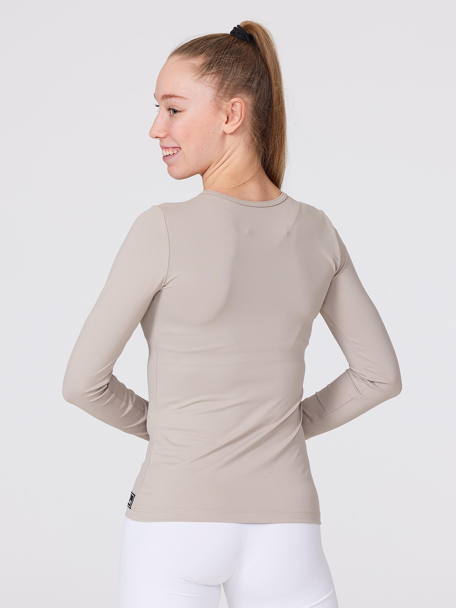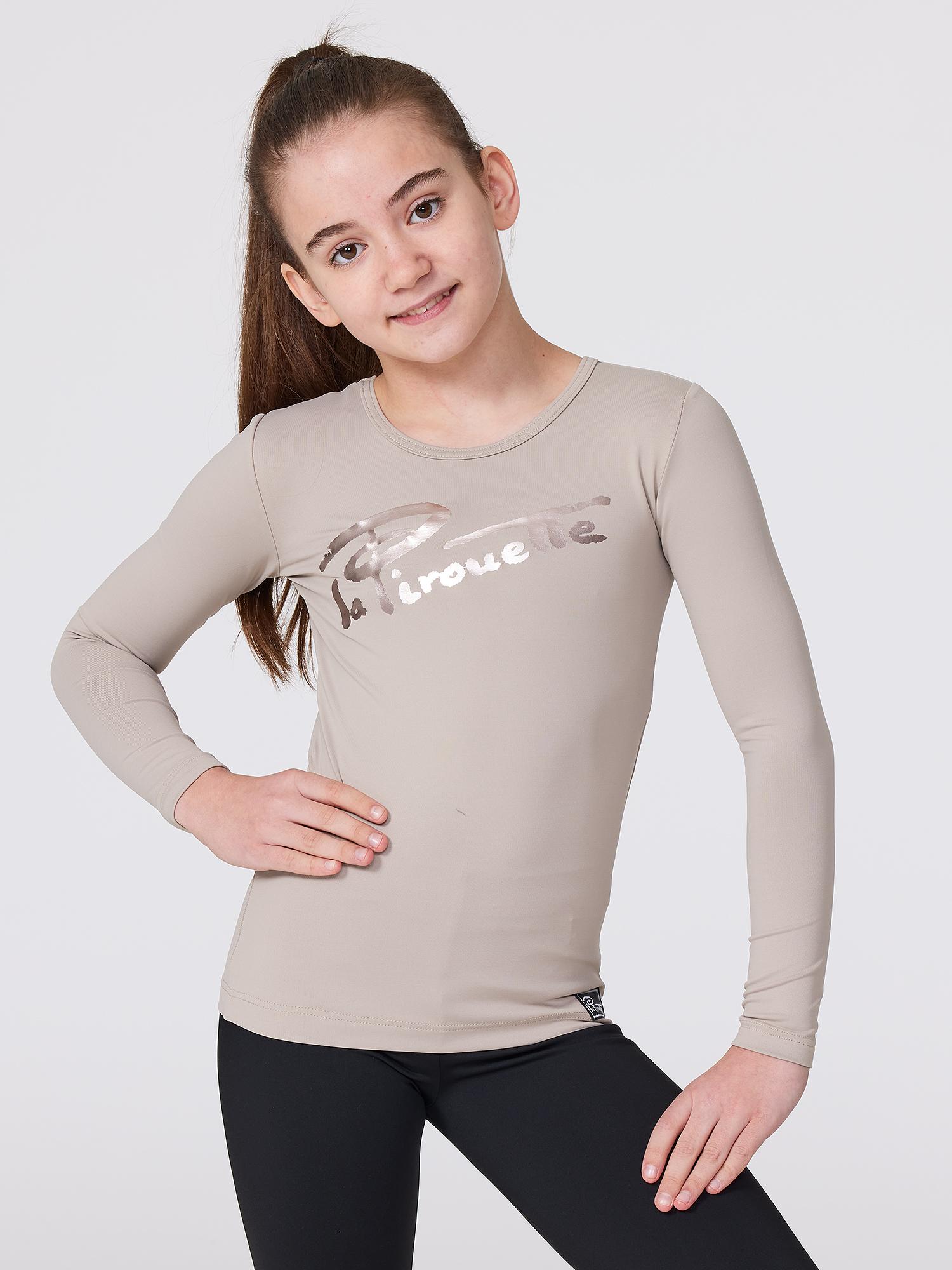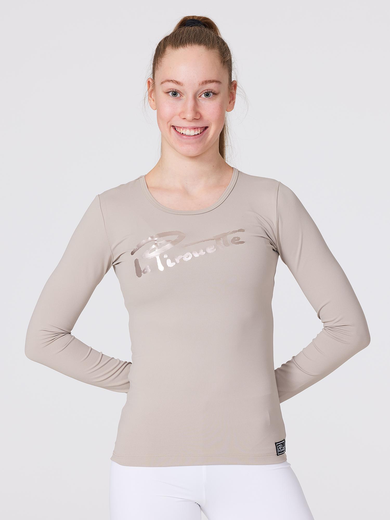 A sleek long-sleeve favorite with La Pirouette glitter print. Designed with a classic round neckline and made from breathable, and stretchy MicroMeryl performance fabric with a smooth, non-shiny finish. Length from shoulder to hem in size S approx. 24 in / 61 cm.